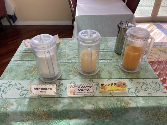 (牛乳・オレンジジュース・グレープフルーツジュース)
