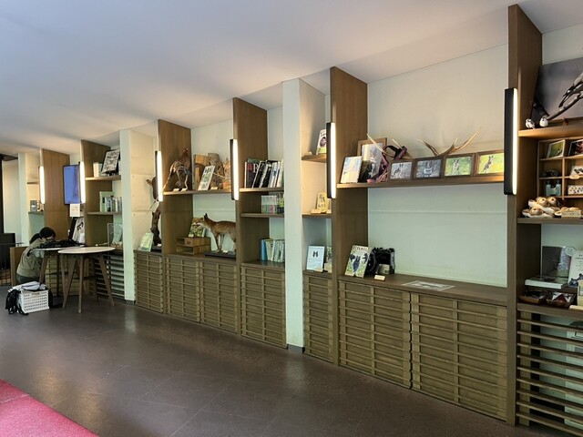・くまだなと呼ばれる本棚の書籍やムササビの巣箱の飼育映像など、周辺に生息している生き物について調べながら、四季折々の自然にふれることができます。