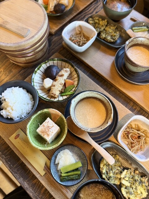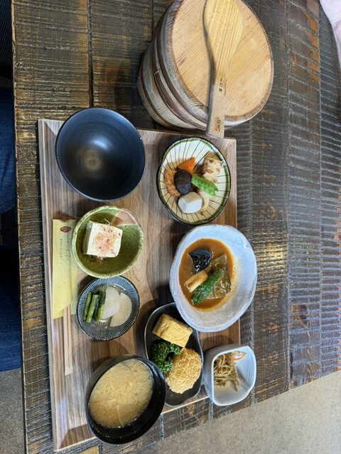 以前軽井沢に行った際にとても美味しかったので、今回もお昼に伺いました。わたしはお肉の定食にしましたが、追加でとろろ汁をトッピングできて嬉しかったです。お米だけでなく、どのおかずも美味しいですが特に野沢...