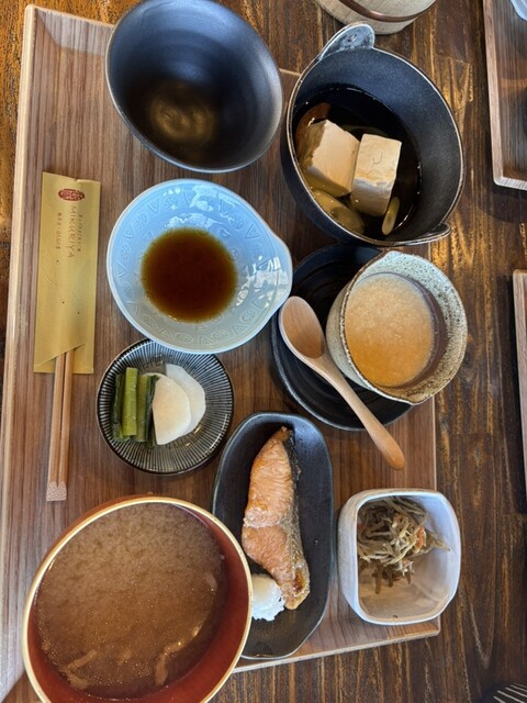 軽井沢らしい落ち着いた空間でいただく和定食は、素材の良さがしっかり感じられる優しい味わい。焼き魚、出汁の効いた味噌汁、小鉢まで丁寧に作られていて、朝から心と身体が整うような満足感があります。景色も良く...