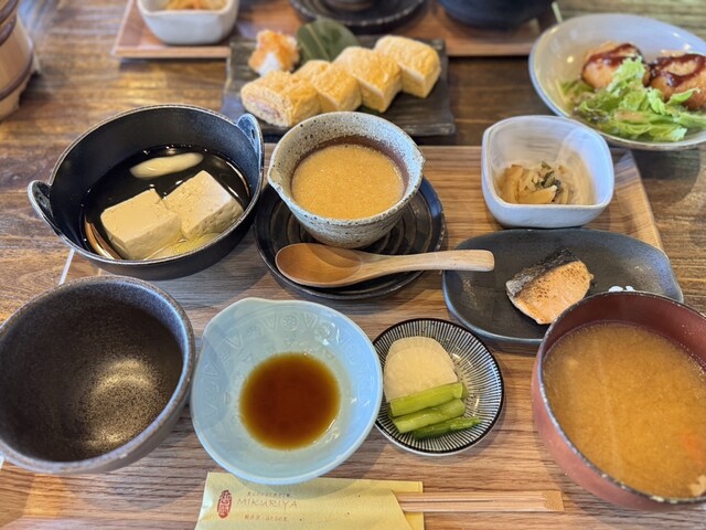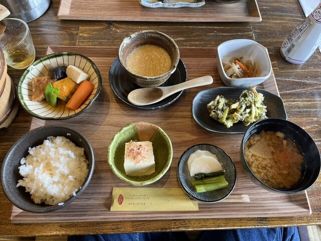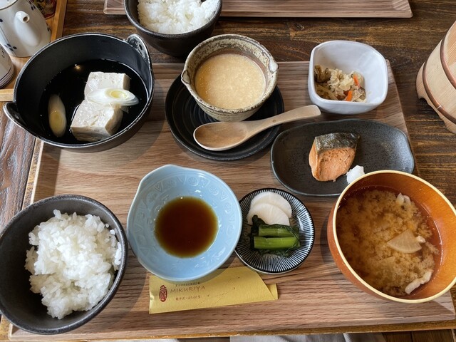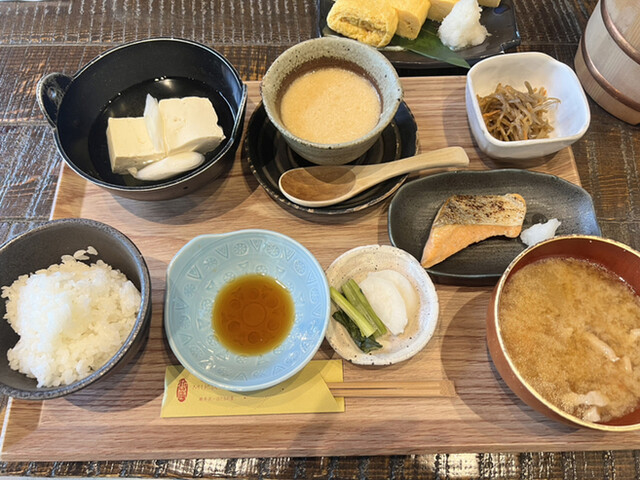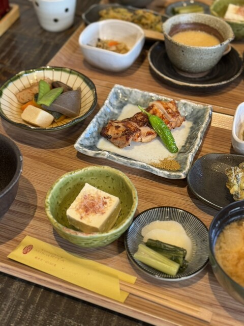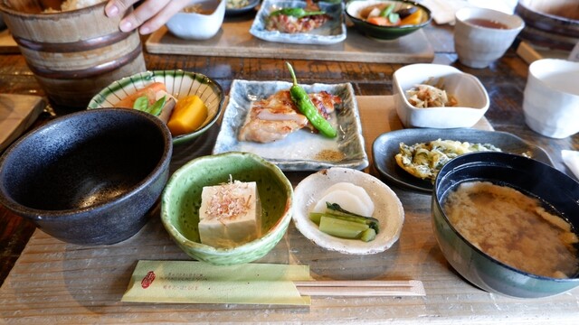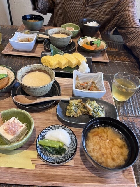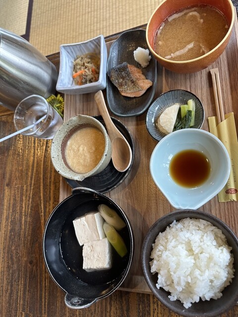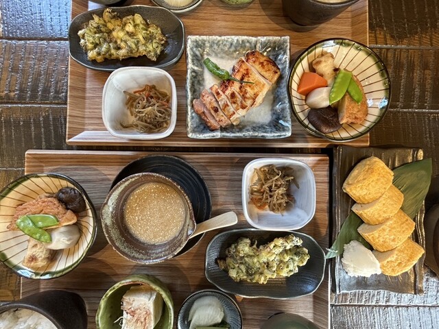 自然の中で食べる和食は全部美味しかった〜〜!卵焼きも、卵焼きの代表って感じで良き!鶏の味噌漬けも、とろろも、お米が進むおかずばかりで、ごはんおかわり必須!ネットで簡単に予約できるのもありがたい。