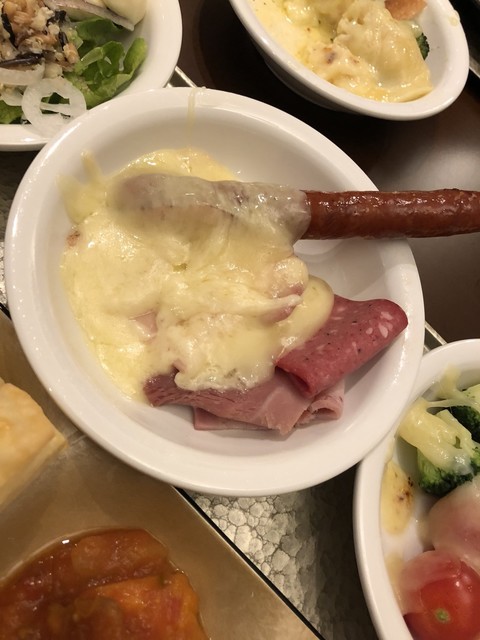 朝は好きな材料にチーズをかけてくれるラクレットもあり、ソーセージや温野菜も、とろーりチーズとモグモグしました♡