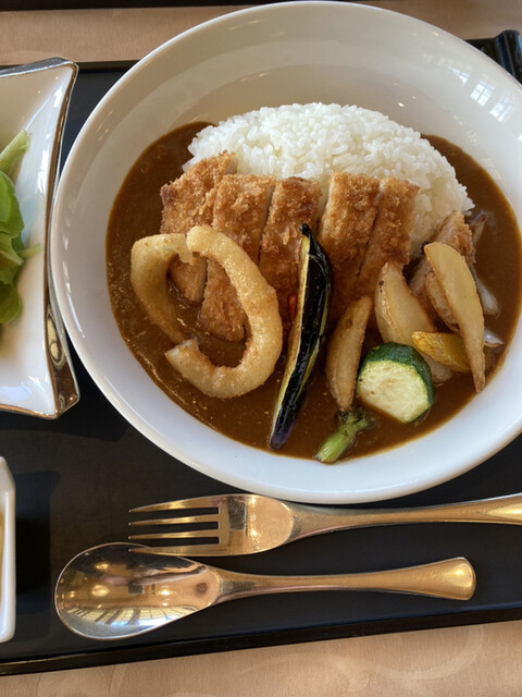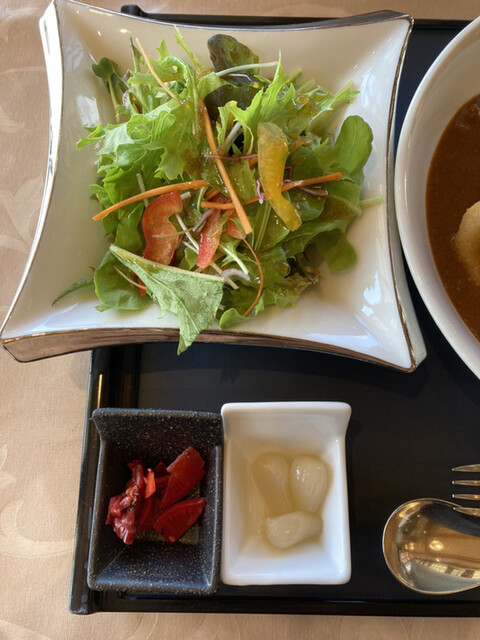 ここのカレーにも八幡屋さんとエクシブのコラボ七味がありました
