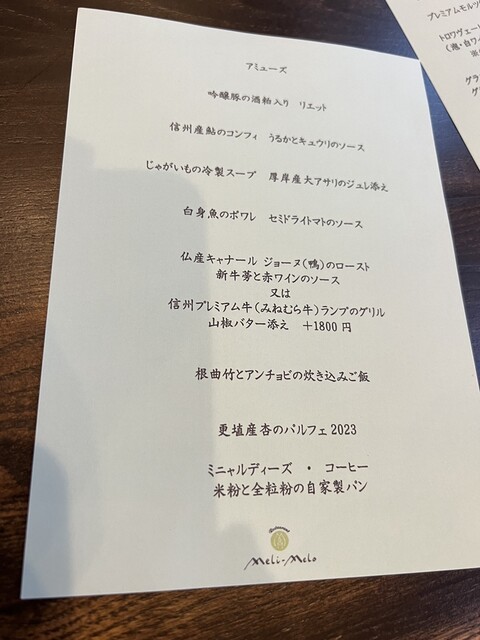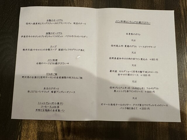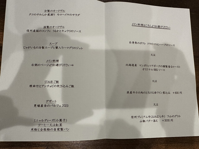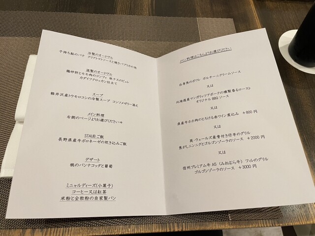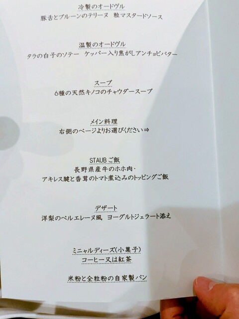 前菜から鮎のコンフィ、スープ、メインとオーソドックスなフレンチですが、〆はストウブのご飯で少し和風テーストもあります。