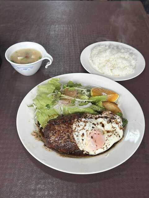 日曜の17:30開店の10分ほど前に到着し、ギリギリ1巡目で入ることができました。大判ハンバーグとサーロインステーキを注文。店主の方1人で全てを調理していると思われ、仕方ないですが注文してから40分ほ...