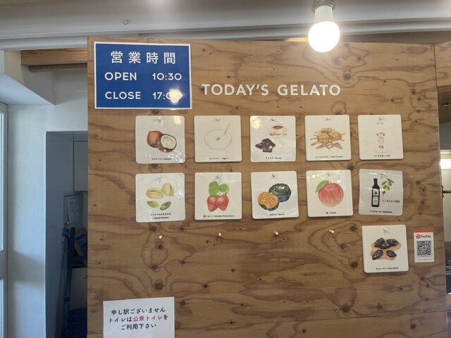 店内は白を基調とした清潔感ある空間で、木のベンチやナチュラルな照明が軽井沢らしい穏やかな雰囲気を演出。ジェラート専門店ならではのカウンター席と、窓辺からの景色を眺めながらゆったりできるベンチもあり、散策の合間に立ち寄るのに...