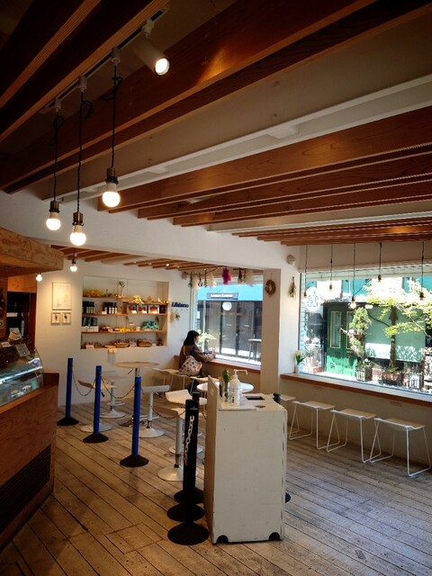 店内は白を基調とした清潔感ある空間で、木のベンチやナチュラルな照明が軽井沢らしい穏やかな雰囲気を演出。ジェラート専門店ならではのカウンター席と、窓辺からの景色を眺めながらゆったりできるベンチもあり、散策の合間に立ち寄るのに...