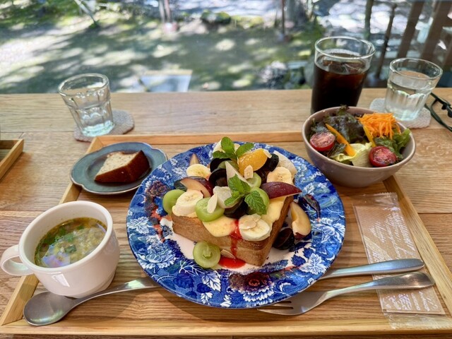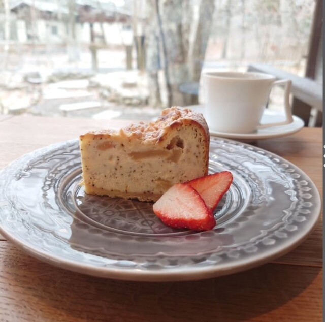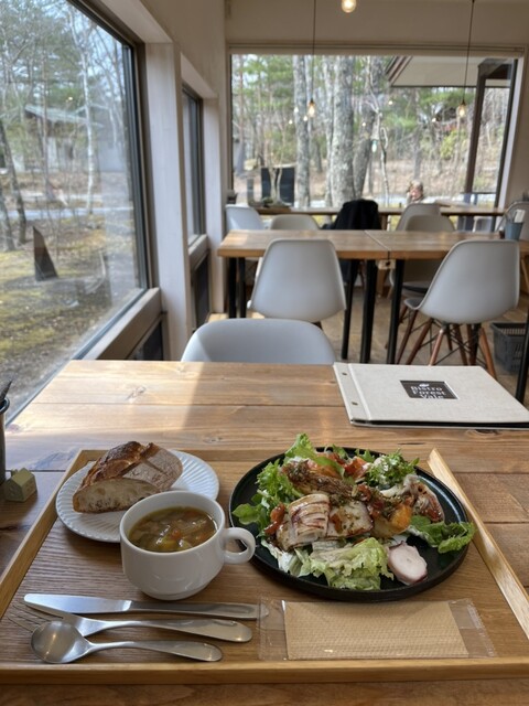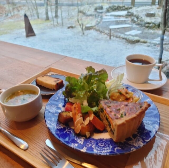 軽井沢から車で森を抜けた先にある人気カフェ。