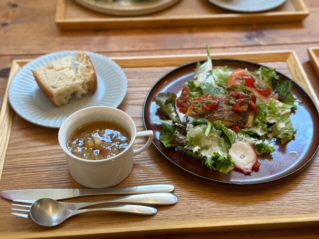大きくはないがそれぞれのテーブルが良い距離感で離れており、外からの光が程よく入る&外の木々を景色に食事を楽しめるお店