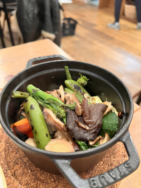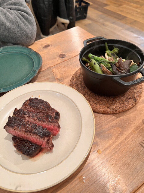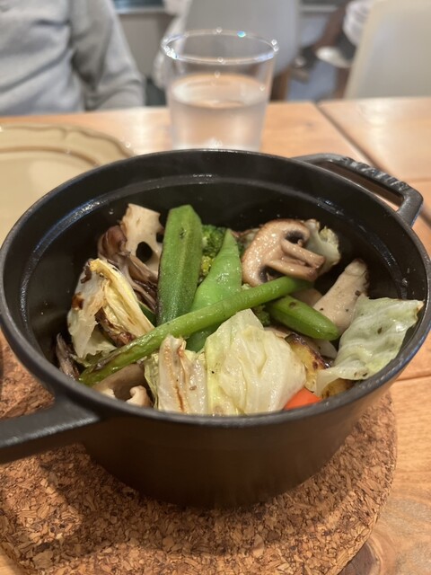 メインの肉料理はカドワキ牛のランプ肉グリエ。見た目も豪快で食欲をそそる一品。付け合わせに焼き野菜のココット。生姜風味と変わり種ではあるが、軽井沢は野菜がとにかく美味しいので最高に贅沢な付け合わせだった。しかし、見た目に違わぬ意外とあっさりといただけるスペシャリテ。