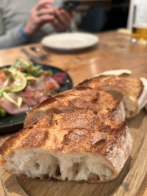 元々はモーニングのクロックセットやフレンチトーストが有名で人気を博しているカフェですが、朝昼と別チームで夜も頑張っていて、我々はディナーのビストロシェアコースをいただきました。