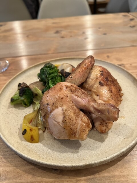 前回訪れた際はカドワキ牛のグリルをいただいたのでこの夜は若鳥にしてみたが一羽を2人でシェアする豪快さ。パサつきなど微塵も感じられないジューシーな鳥料理を堪能できた。