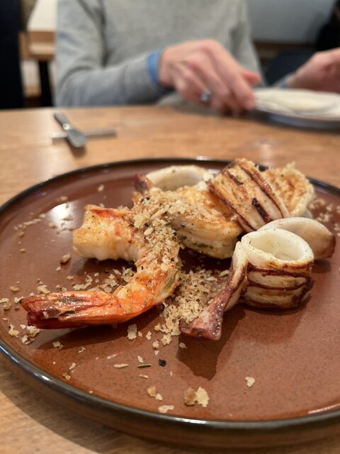海老とイカの香草パン粉焼きはアンチョビの香りを活かして少しイタリアンな一品。