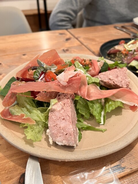 ⚫︎牛肉コーンビーフのようなパテ、生ハムなどのサラダ