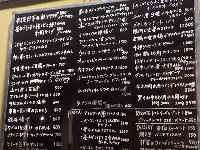 | 空間・設備 | オシャレな空間、落ち着いた空間、カウンター席あり |