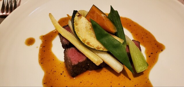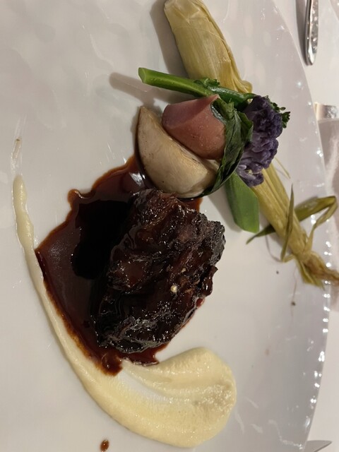 2食付プランで宿泊しましたが、料理は1万4千円相当のフルコースでした。アミューズからメインのお肉料理、デザートまでどれも美味しかった。ワインはボトルでちょっと高めで8千円台から。値段相応に?飲み飽きな...