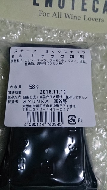軽井沢プリンスショッピングプラザのワイン屋さんで ナッツの燻製 58g 665円
