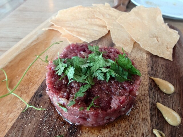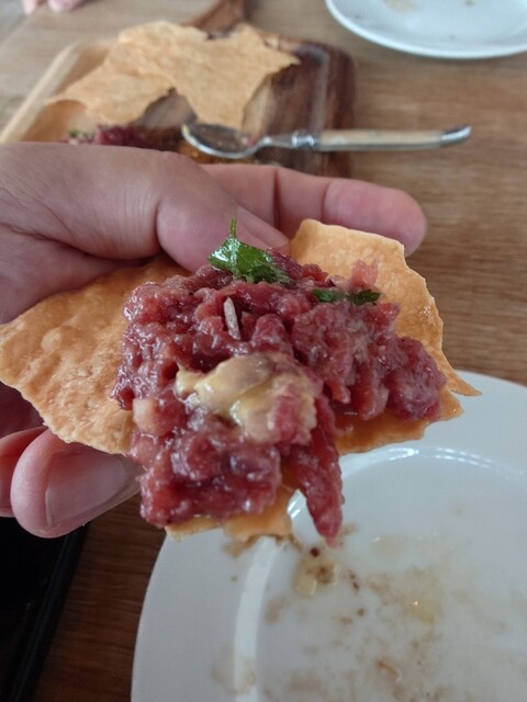 軽井沢プリンスアウトレットの新しくオープンしたステーキ店 東京の飯田橋と日本橋にお店があります。 150gから注文できるステーキやタルタル料理が人気のお店で、パスタやピザメニューはありません。 他に温菜としてオニオングラタンスープ、ポタージュ、ムール貝のシャルドネ蒸しなど。 今回はアンガス牛のステーキ150g、トマトとサーモンのタルタル、ムール貝のシャルドネ蒸し、ポタージュを注文、... 詳細を見る