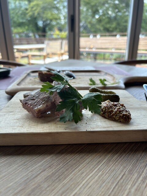 メインはAUSサーロイン150g。これがただのステーキじゃない。熱々の焼き石、ホットストーンに乗ってドーンと提供されるのです。ジュワッと焼ける音、香ばしい匂い、そして自分好みの焼き加減に仕上げられるワクワク感。まさに“体験型フレンチ”と呼びたい楽しさ。ステーキを頬張り、ライスかパンを選んで一緒にガッツリ。これだけで完全に満足度MAXなのに、最後にクレームブリュレまで付いているのが罪深い。表面パリッ、中はとろける甘さで〆る瞬間、「あぁ軽井沢に来て良かった」と心から思えます。