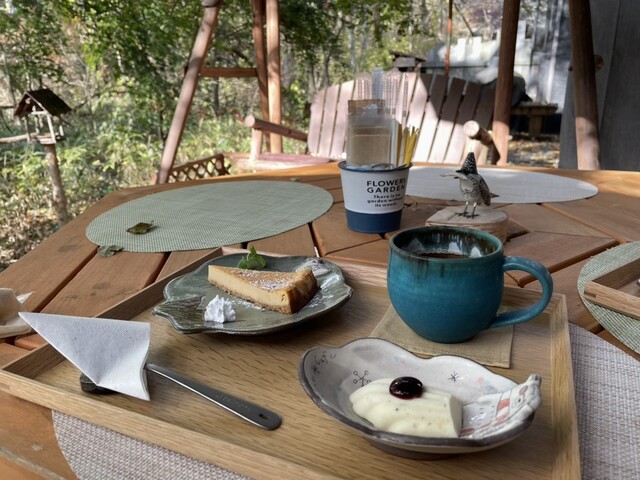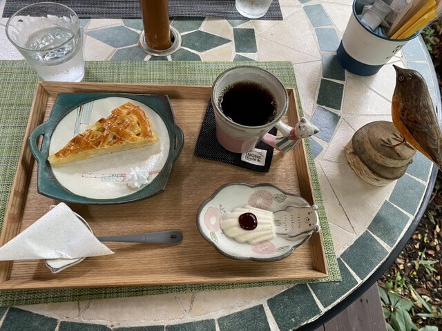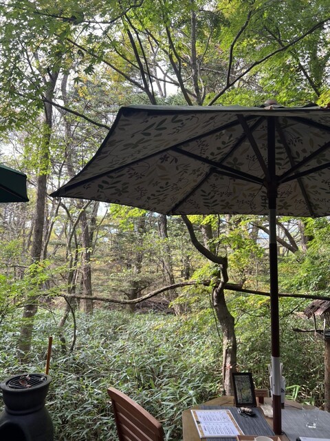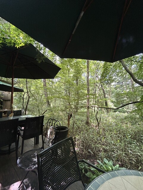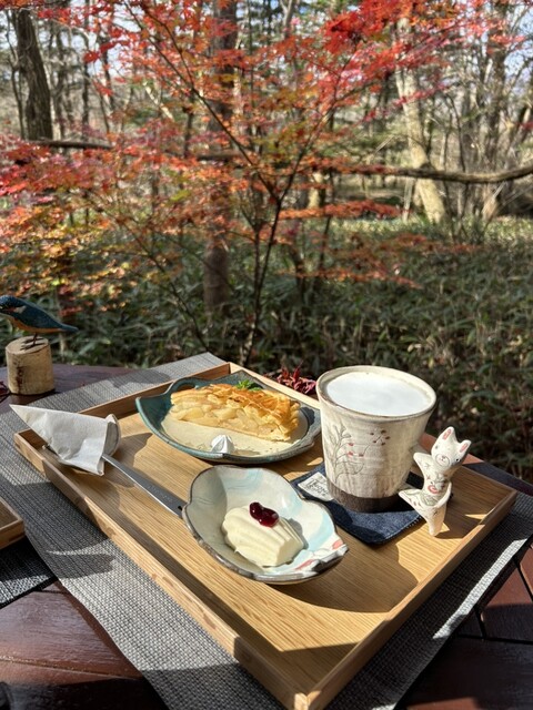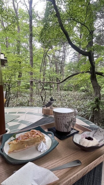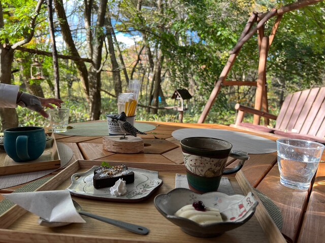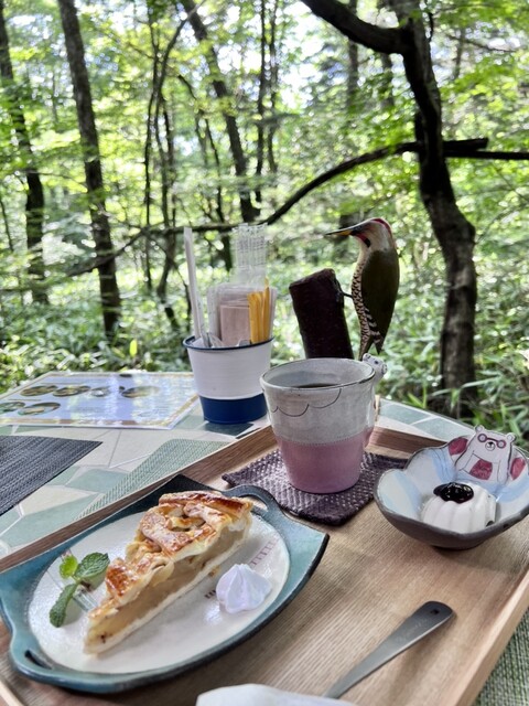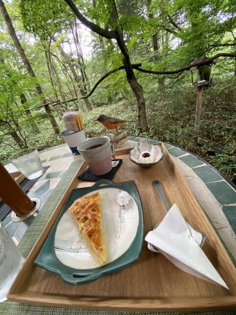 森を感じながらのティータイムを過ごせるテラス席が素晴らしかったです!お庭には野鳥がやってきて、川の音も聴こえます。ケーキも美味しい!