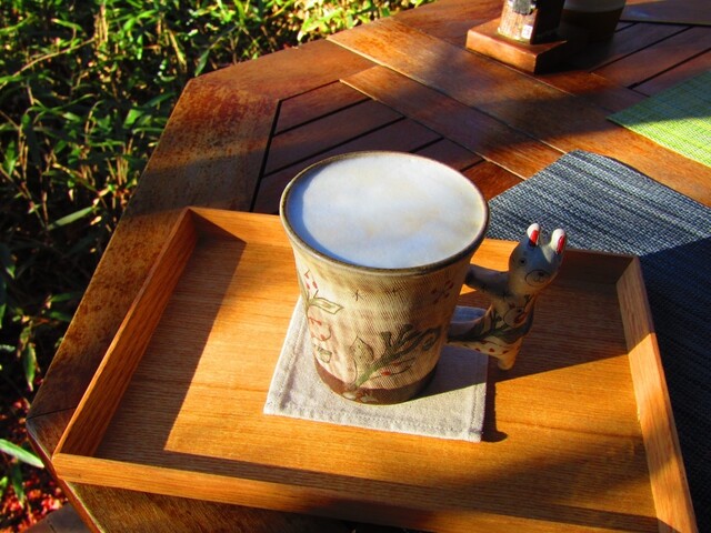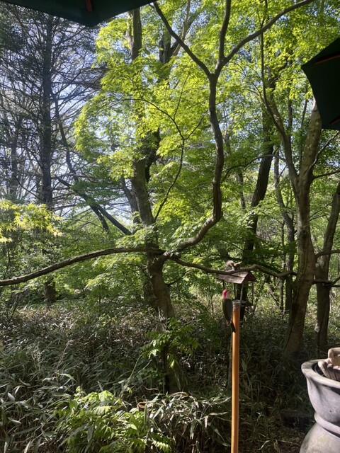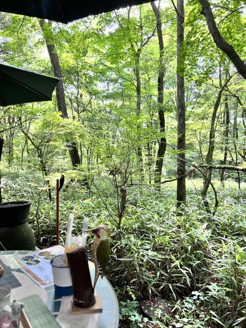 もうねぇ、このカフェは最高なのですよ。特にテラス席は目の前の林に行き交う小鳥...