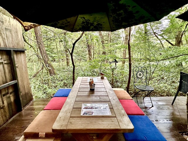 完全オープンテラス型で、目の前の湯川や、軽井沢らしい森、集...