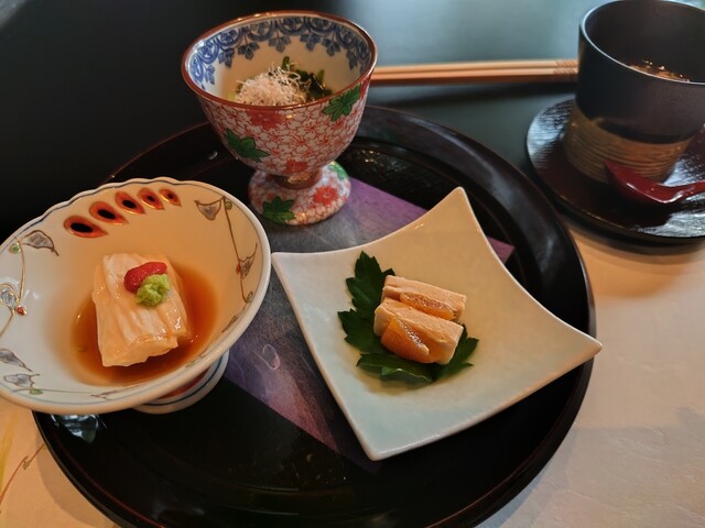 平日限定の蒸しゃぶを頂きました。コース8000円です。蟹の茶碗蒸し、前菜はクリームチーズの味噌漬け、蓴菜、湯葉。茶碗蒸しが蟹の味もしっかりして美味しいです。そして蒸ししゃぶ。文字どおり、蒸し器で野菜や豚肉、牛肉をしっかり蒸していきます。油が下に落ちるためヘルシー。野菜の種類も豊富です。ポン酢、醤油ダレ(辛い柚子味噌つき)でいただきます。キノコご飯と味噌汁つきです。デザートは水菓子とどらやき。ドリンクは頼まなくてもお茶がでます。