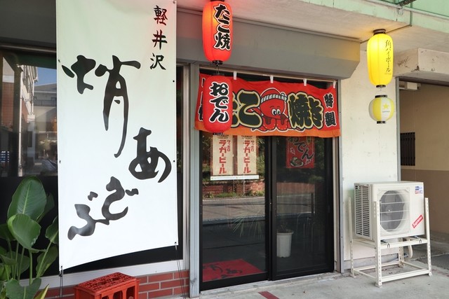 軽井沢では珍しい横丁スタイルのお店で1人でも気軽に入りやすく、ドリンクメニューも多数有るのでカップルやグループの飲み会に最適!たこ焼きのテイクアウトも可能。