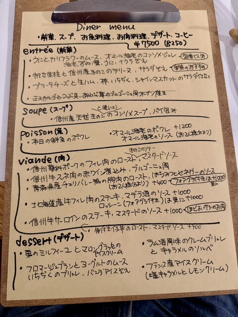 前菜やメイン料理などの各項目ごとに複数の選択肢の中から好きなものを選んで、自分好みのコースを組み立てるプリフィクススタイルで自分好みのコースに仕立てていきます。