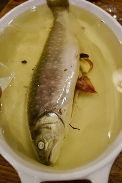 この酸味がしっかり濃厚ソースと岩魚もまとめてくれるんですね。食感も面白いです。