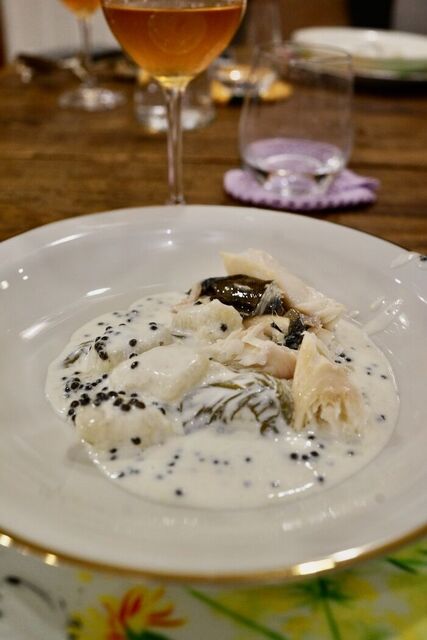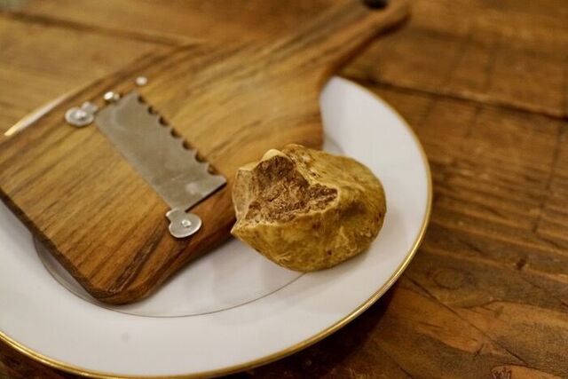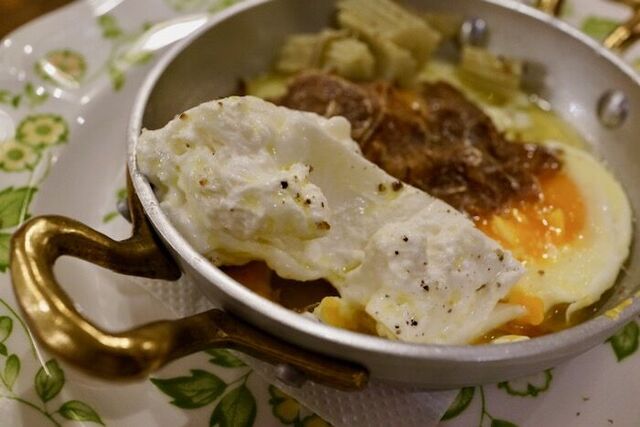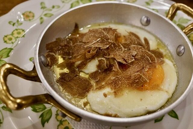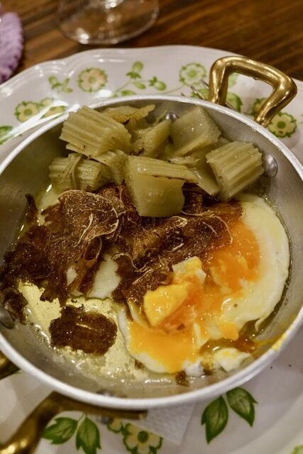 トリュフや豚の塩漬け、香味野菜のソースで。