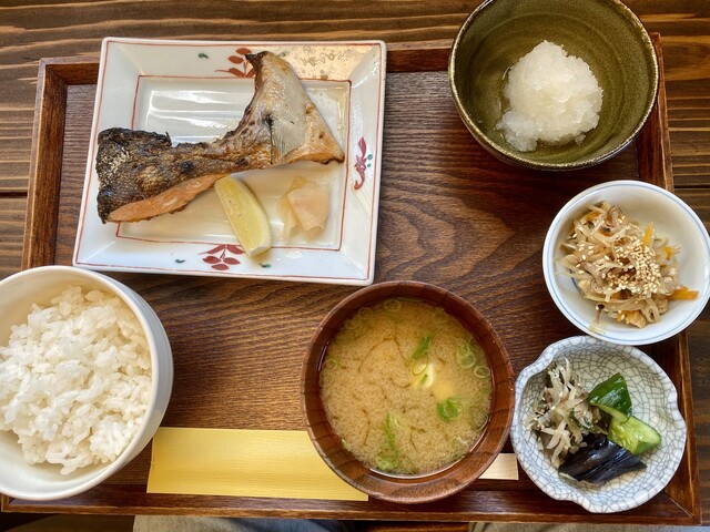 小鉢、大根おろし、漬物、ご飯、味噌汁。