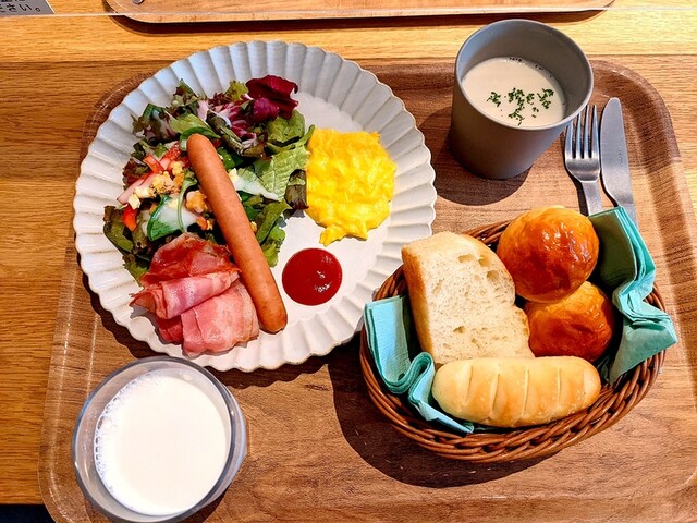 朝ごはん付き宿泊でした。3種選ぶことができて、女性にちょうど良い量だったので嬉しかったです。この後に旅行でいろいろ食べると思うと、このくらいの量がありがたいです。宿も無駄なくシンプルなステイで良かったです。