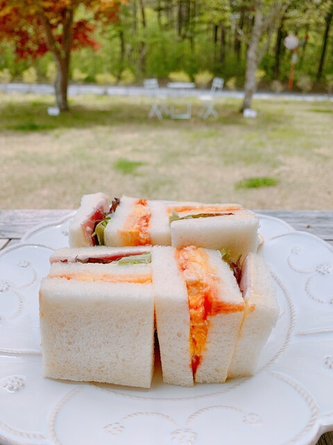 和牛フィレカツサンドは3切れのみなのですが、お肉が分厚いので十分にお腹いっぱいになりました。セットに追加したトマトサラダはさっぱりとした味わいで美味しかったです。