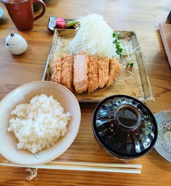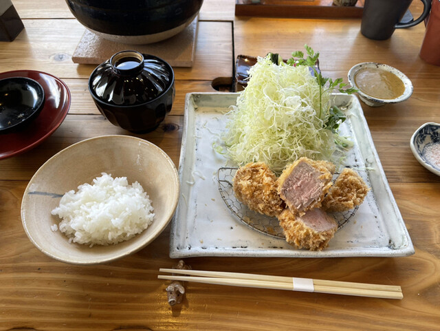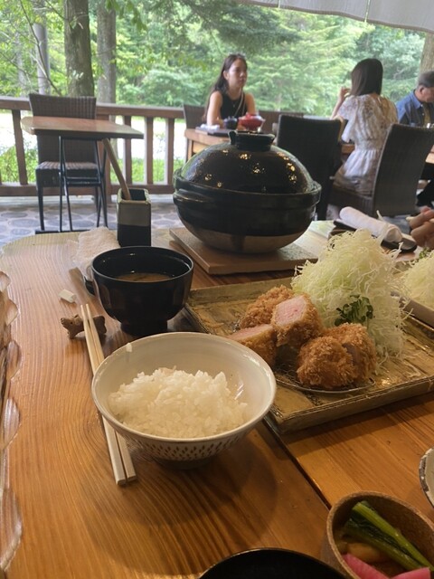 今井さんのすぐそばのショッピングモールでお買い物する前に、開放的なテラスで土鍋のご飯と一緒にヒレカツをいただきました!お昼とは思えないボリュームがあり、満足です!ぜひ軽井沢に行った際はまた行きたいと思...