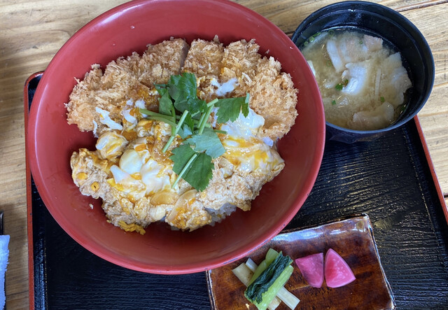 ロースかつ丼、チョイス。たまごで閉じないタイプのかつ丼、テンションあがる、初めて。