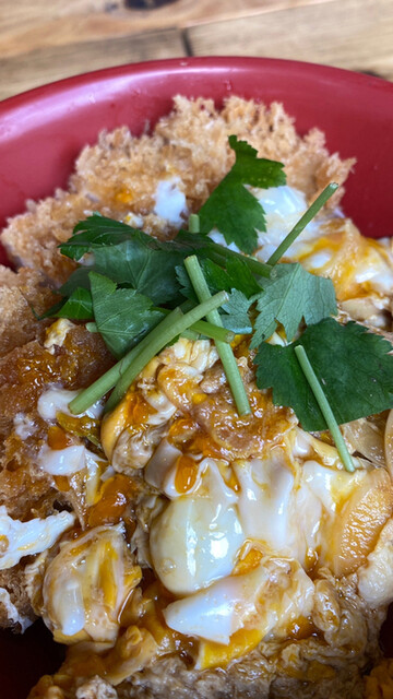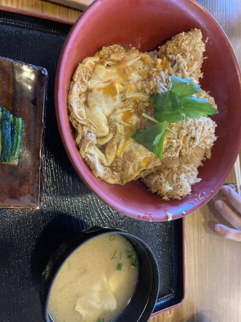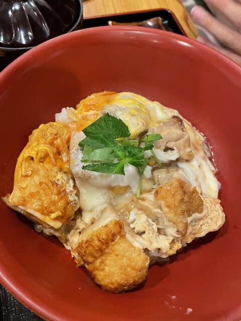 たまごの甘み、出汁がご飯にしみてて良き。カツはさくさくのママで嬉しい。タイミングを見てたまごと一緒に食べるといわゆるかつ丼が出来上がる。