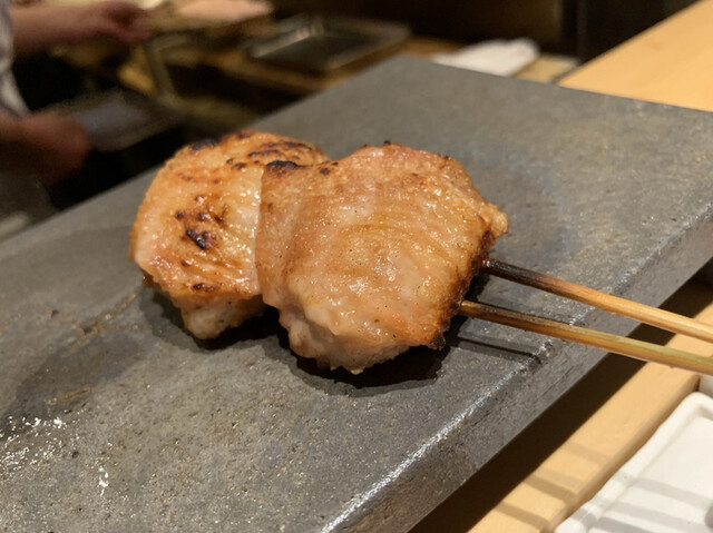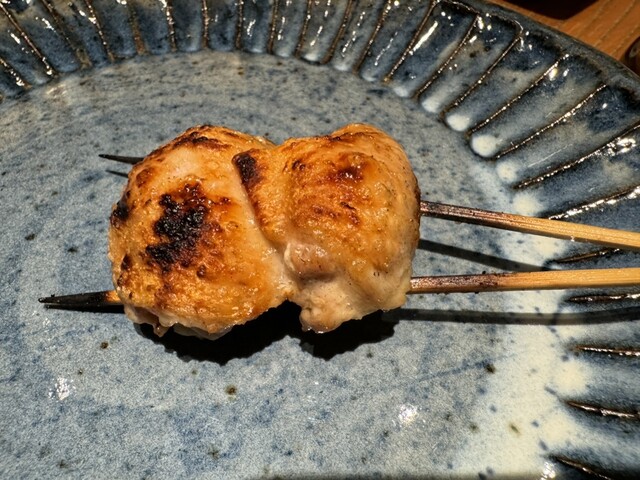 「うずらの玉子」…以前は出していなかったが、大将が研究に研究を重ねて、塩に浸したりして、半熟ではなく少し良く焼きにして前回から出してくれるようになったひと串。こういう追求心がみんなをファンにするんだよね。