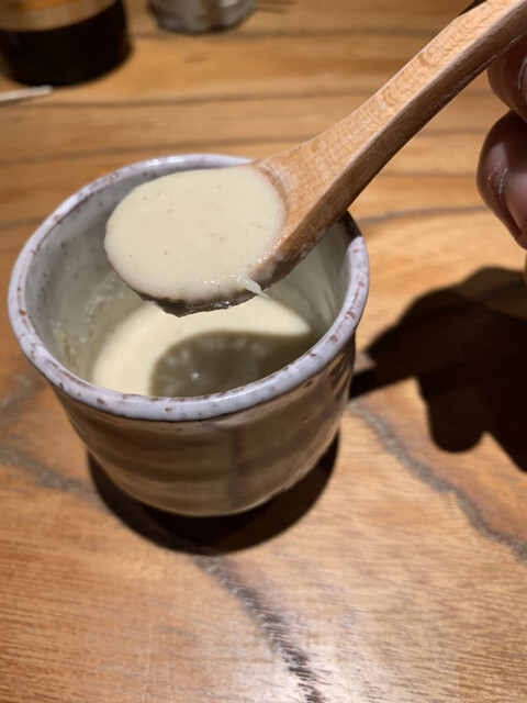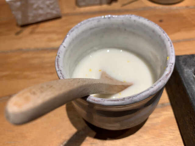 「ゆず風味の牛乳プリン」…あれ?今まで一度もデザートは出て来た事のない店だったのに、今日は出できた⁉︎…あれ?と不思議に思っていると、どうやら僕が書き込んだレビューを読んで大将の土屋さんがデザートを加えてくれたらしい。…すいません、ありがとうございます。乳製品で軽く閉める感じで、『柚子風味の牛乳プリン』…甘さは控えめで、やっぱり最後に落ち着ける一品、美味しゅうございました。
