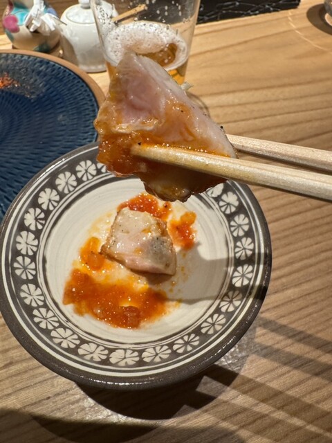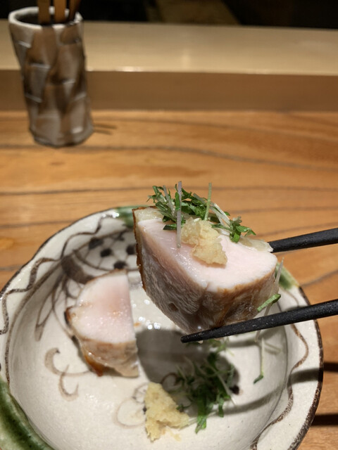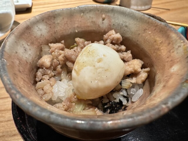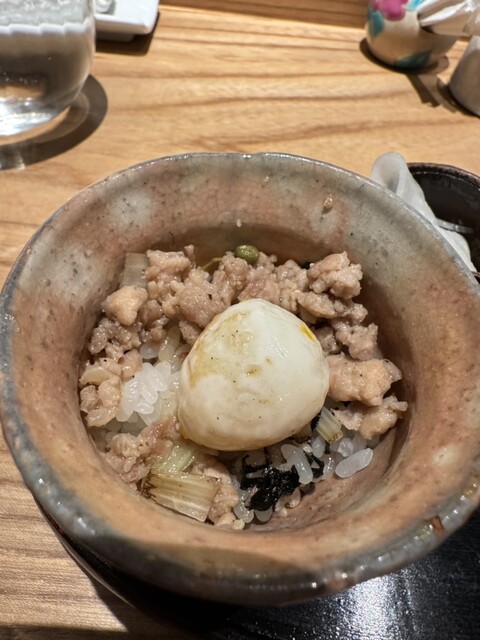「ささみ」…サッパリしたささみに山葵を乗せて。これまた火入れが絶妙で旨し。ここでコースはひと通り終了。このあと〆のご飯になるが、お腹はまずまずいっぱいではあったが、やはり食べなきゃいけないものがある。