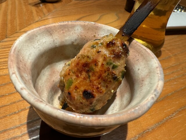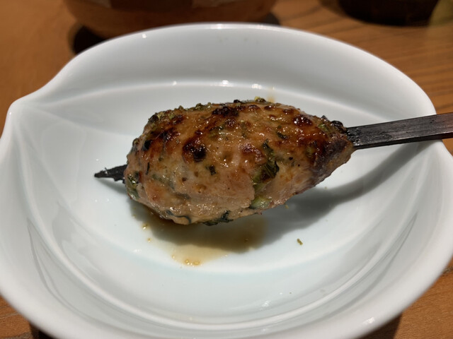 「つくね」…軟骨も入り、細挽き肉、粗挽きの肉の両方を合わせ、以前よりも中に入れる野沢菜の量を増やして、工夫している。…漫然と食べているとわからないが、これもまた同じように見えて、変化を刻々とさせている。