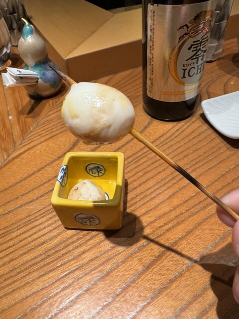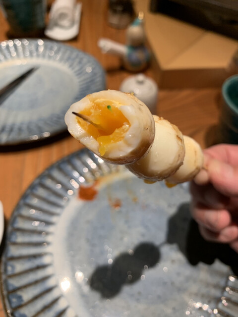「うずら」…中はとろける半熟。これも以前は店で出ていなかったが、出して欲しいなあと要望したら出してくれた一品。仕込みが大変なのに有難い事、美味しいからもちろん食べたいひと串。