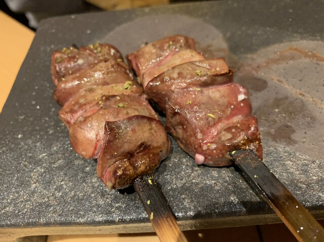 「レバー」…火入れはほどほどに、しっとりとした焼き具合で、美味しい。