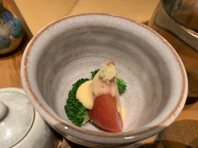 「トマト、ブロッコリー」…口直し的な野菜。鮮度よく美味い。