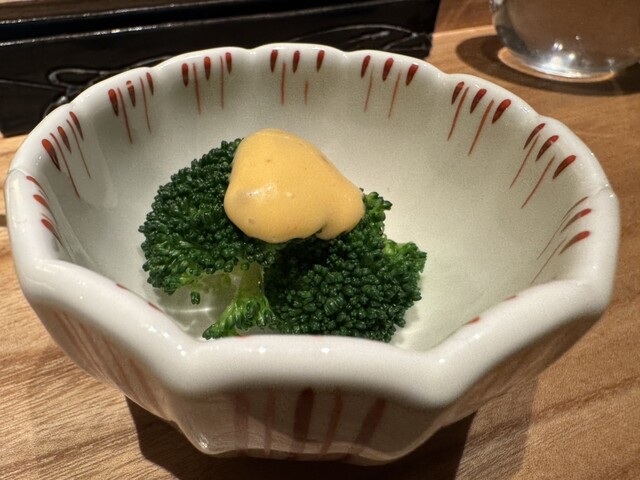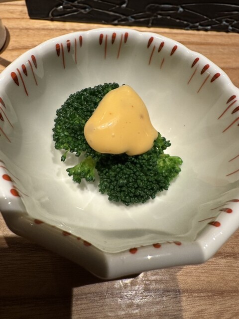 「ブロッコリー」…コリコリのブロッコリーにサウザンアイランド風のドレッシング。食感が美味しい。