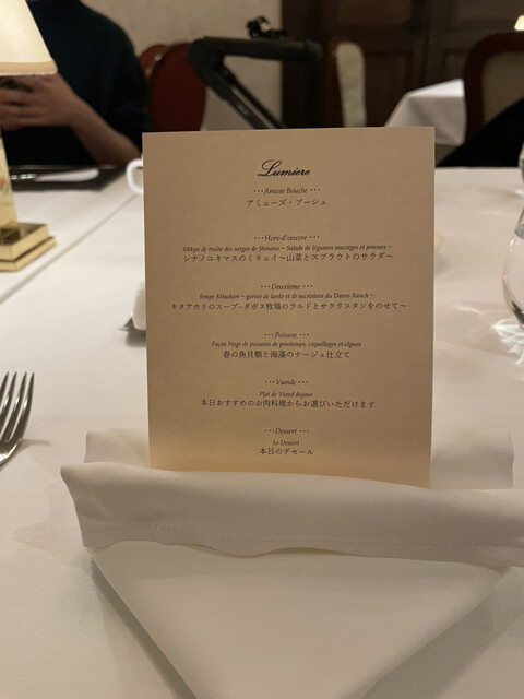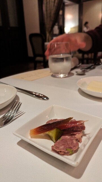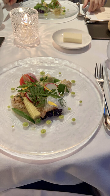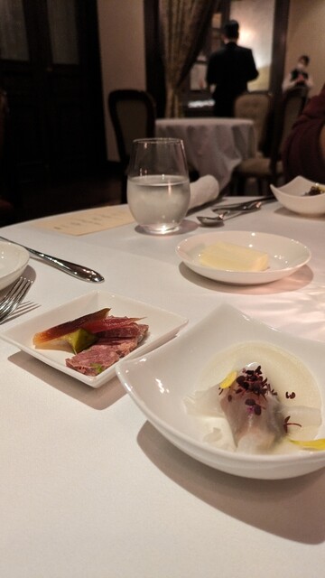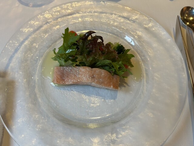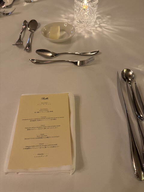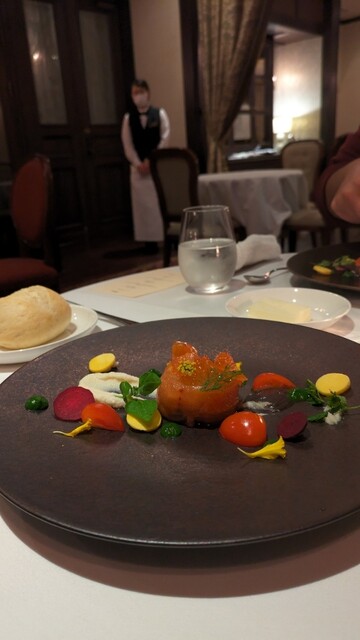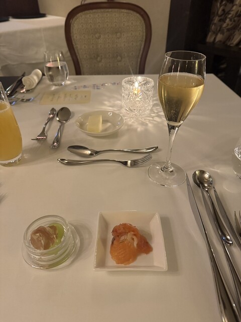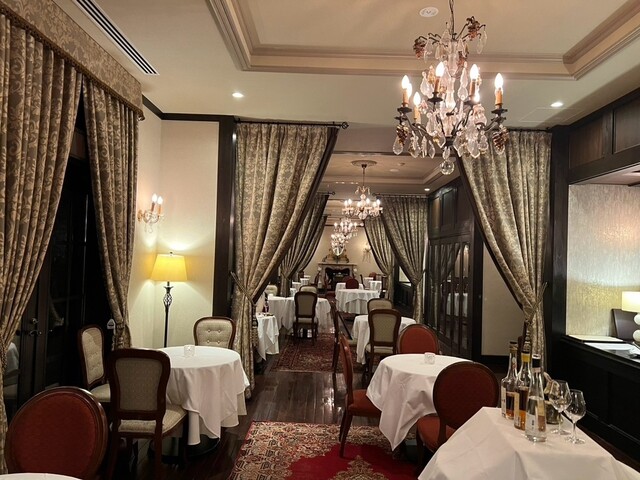 こちらのホテルの滞在したのでディナーをいただきました。天井が高く、日本にいるとは思えない完璧なヨーロッパの世界観の中でいただくフルコースはとても美味しかったです。