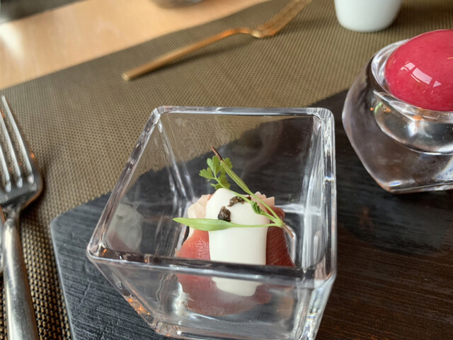 「鰹とビーツ」…甘めのビーツの下には漬け風の鰹が潜む。
