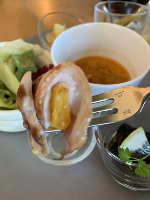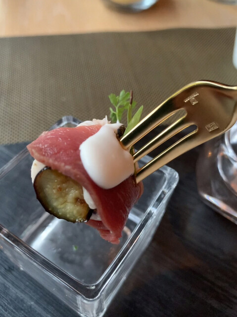 「鴨肉と茄子」…鴨肉に巻かれた茄子とチーズ。
