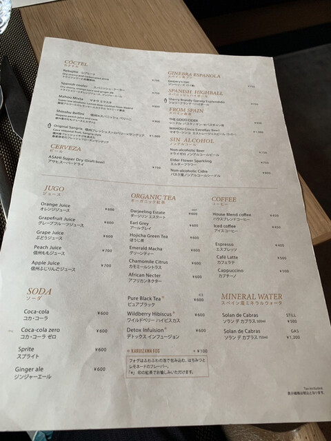元々は1957年マドリードで創業したスペイン王室御用達のお店。その日本展開、渋谷に続く2号店目がここ軽井沢本通り沿いにあるTWIN-LINE HOTELの一階にある。今回ここを予約して訪問。