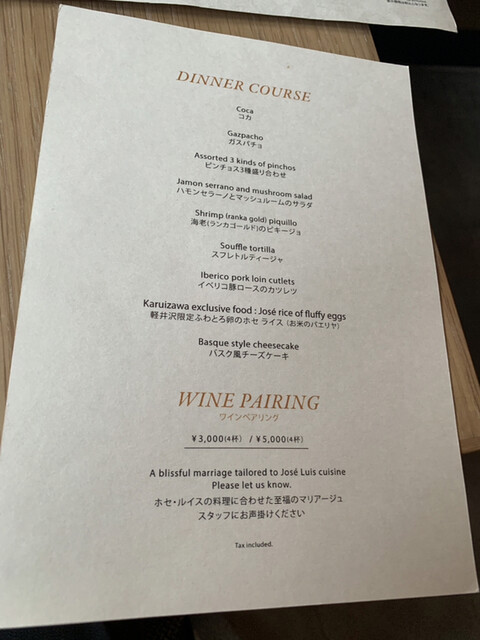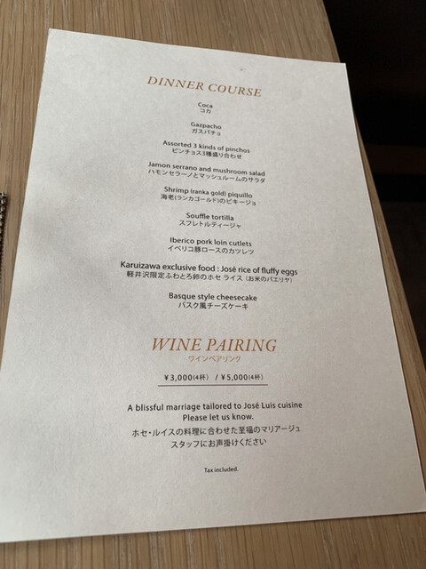 久しぶりに軽井沢のスペイン料理「ホセ ルイス」訪問。